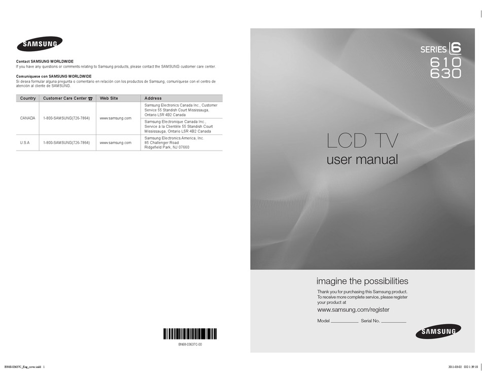 2 scroll down to product support. Make sure to plug the power cord in until it is firmly inserted. 4 on the page of the device. If you have any questions or comments relating to samsung products, please … How to use view … Series 6 led tv pdf manual download. This manual comes under the category televisions and has been rated by 1 people with an average of a 7.5. Samsung series 7 tv manual nonboardboard.org.