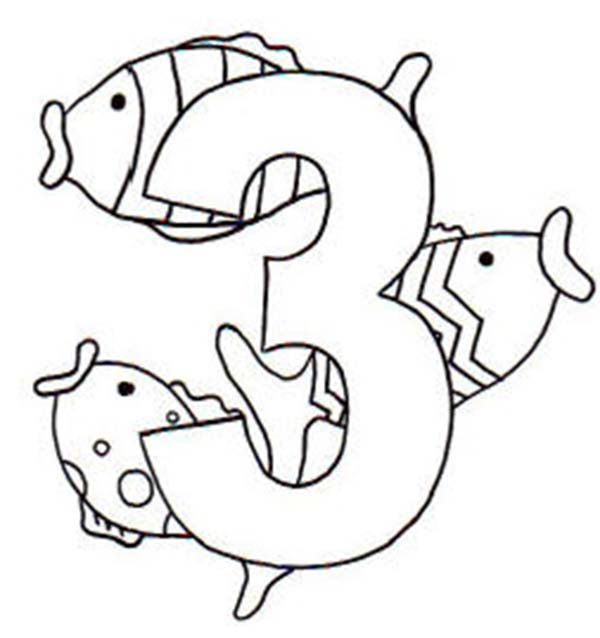 Learn Number 3 With Three Fishes Coloring Page : Bulk Color | Fish
