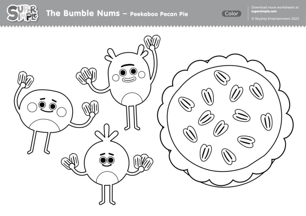 The Bumble Nums – Peekaboo Pecan Pie Coloring Page – Super Simple