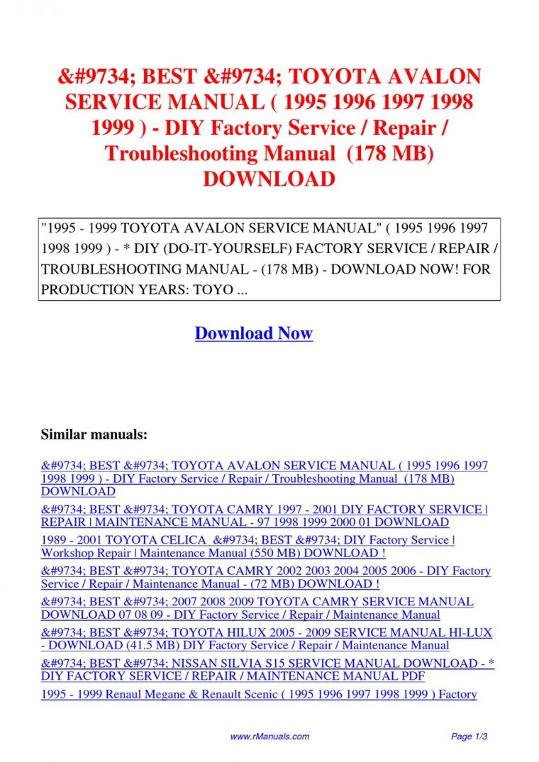 View Toyota Avalon Repair Manual Pdf Free Gif
