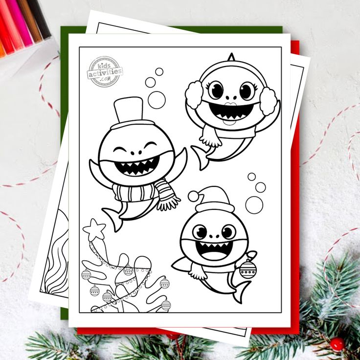 christmas shark coloring page
