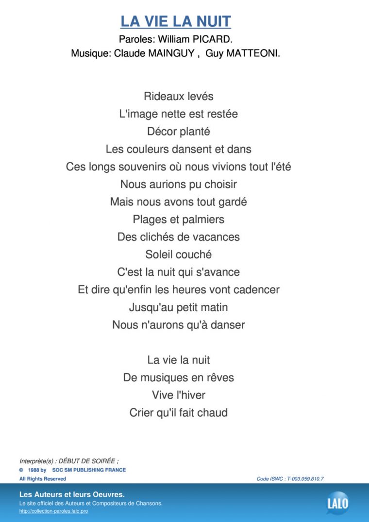Impressionnant Dans La Nuit De L Hiver Chanson