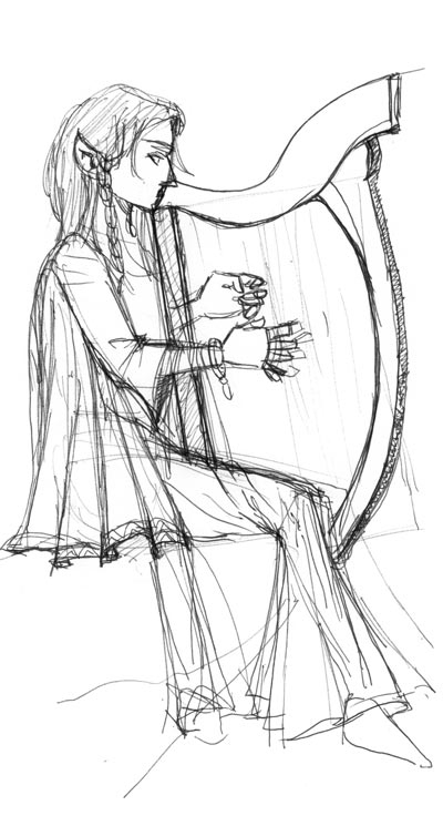 Imposant Dessin Harpe