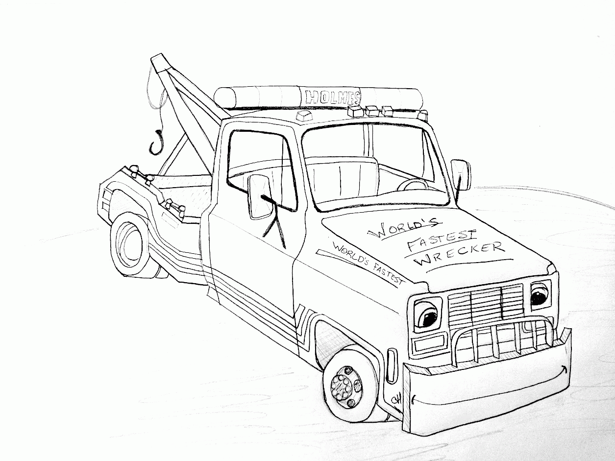 tow truck coloring page