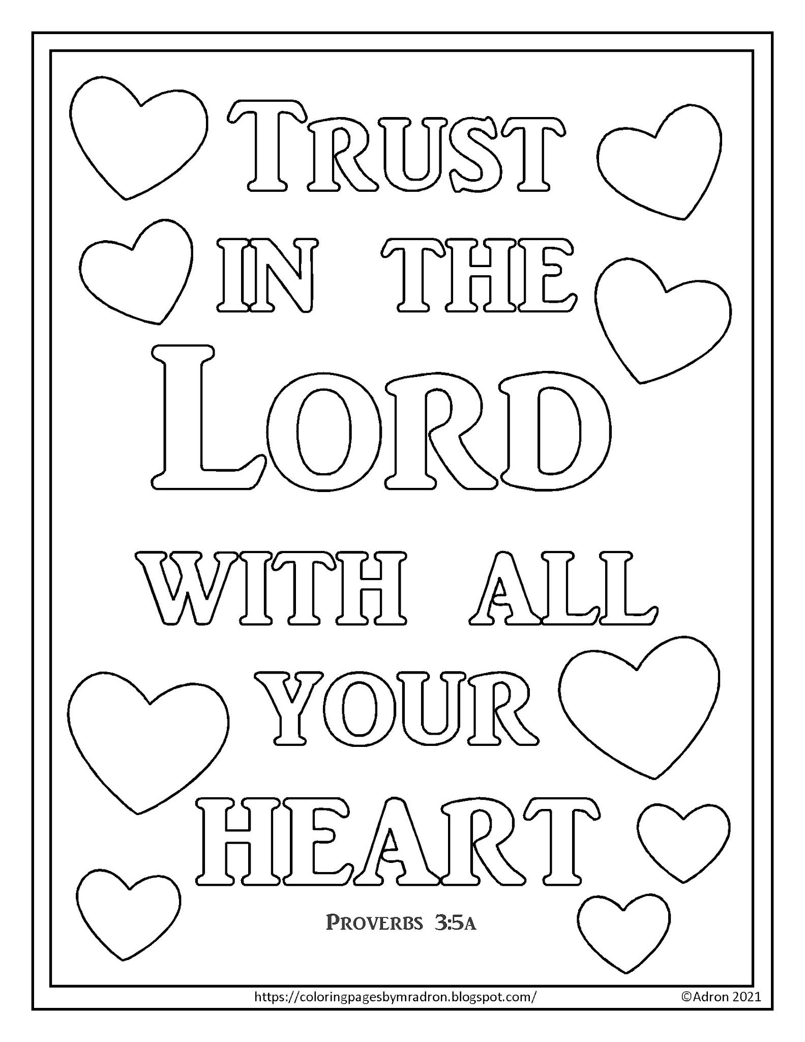 Print and color page, trust in the lord with all your heart, bible verse.